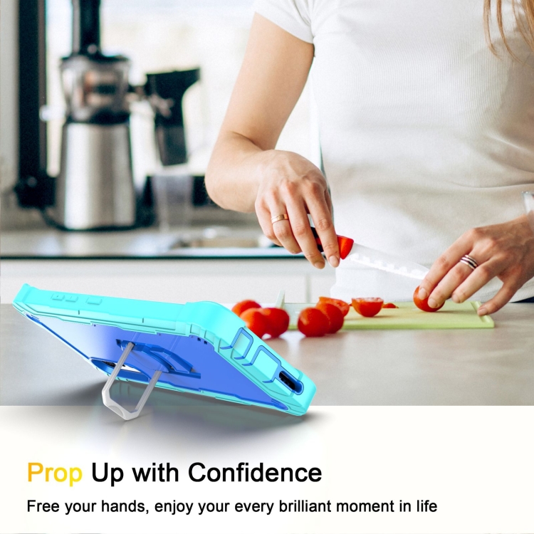 Funda Protectora para LG Velvet PC + Caucho 3-Capas a Prueba de Golpes con Soporte Giratorio (Menta Verde + Azul)