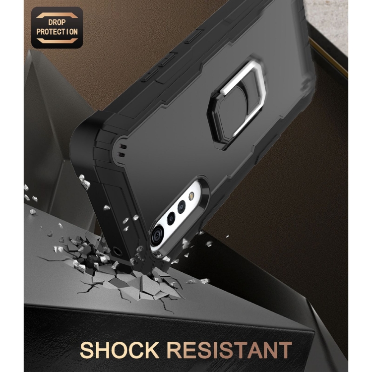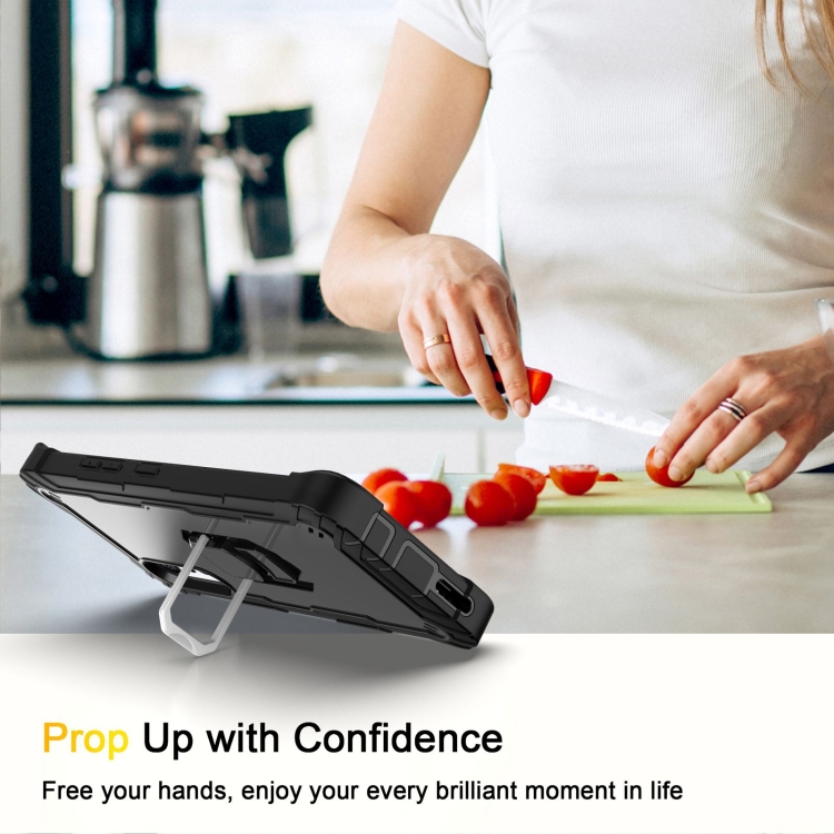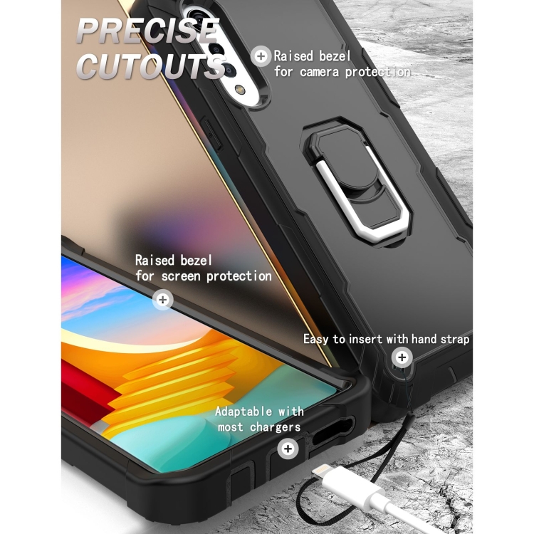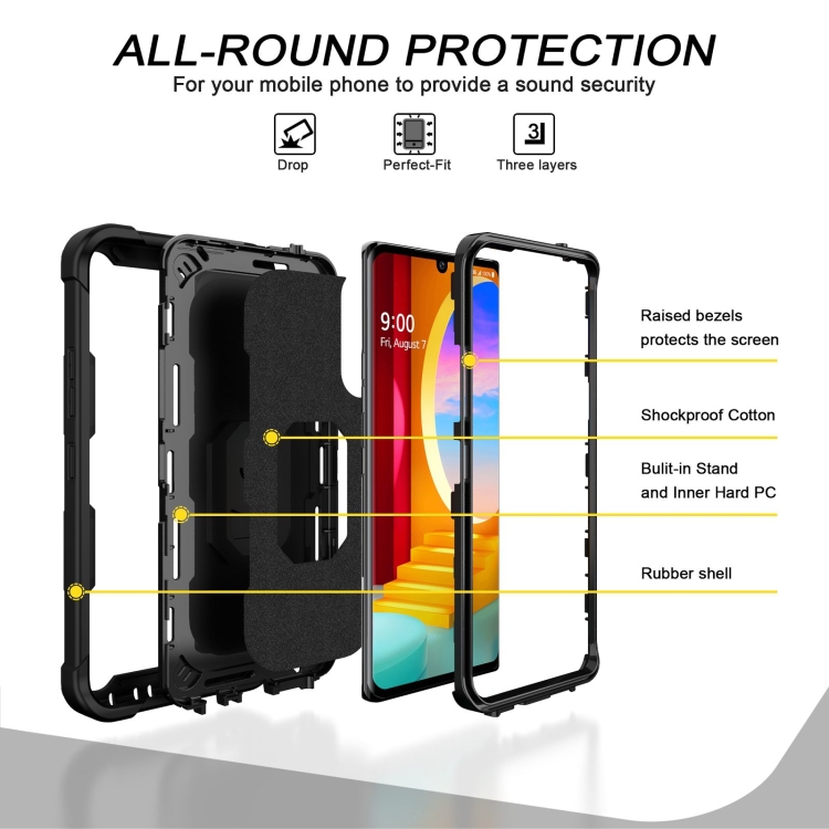 Funda Protectora para LG Velvet PC + Caucho 3-Capas con Soporte Giratorio (Negro)