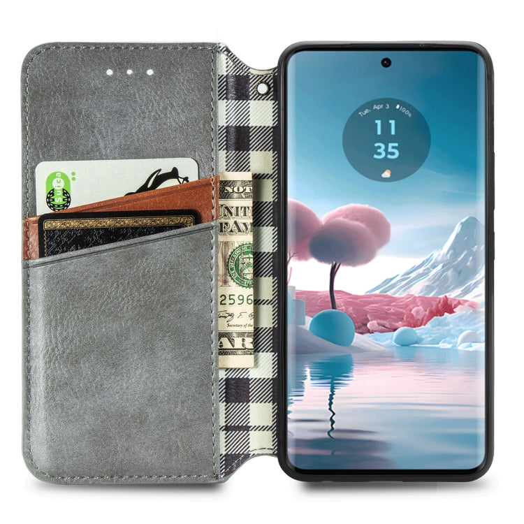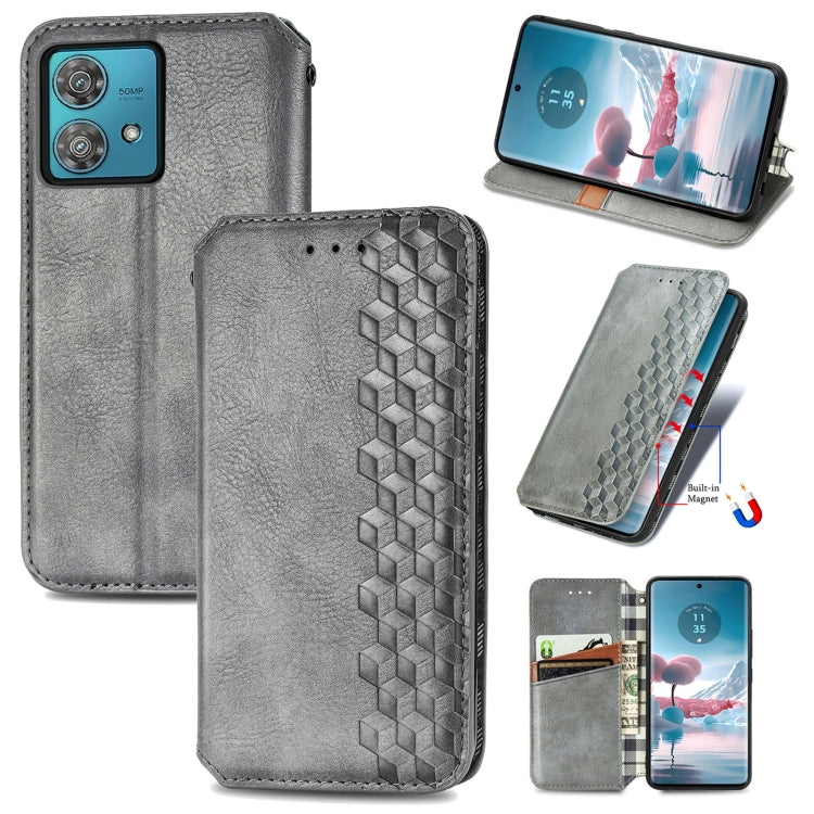 Funda de Cuero Magnético Prensado para Motorola Edge 40 Neo Cubic Grid (Gris)