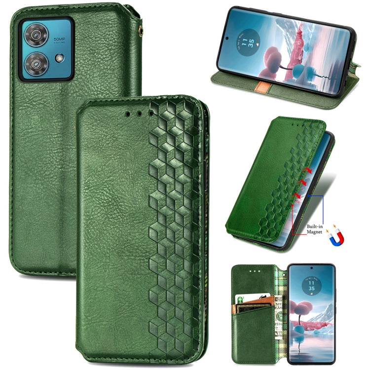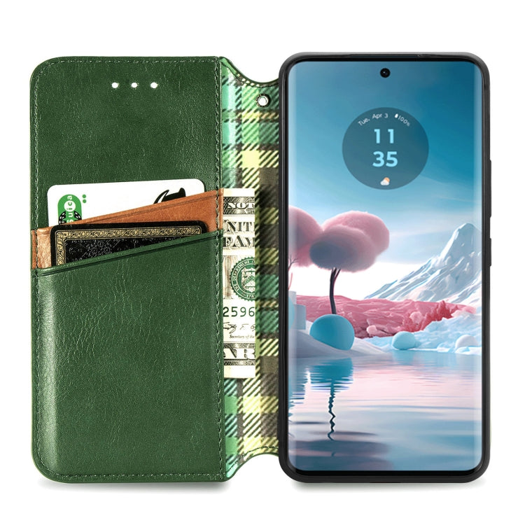 Funda de Cuero Magnético Prensado para Motorola Edge 40 Neo Cubic Grid (Verde)