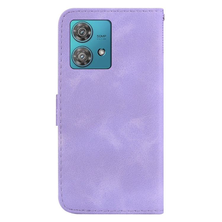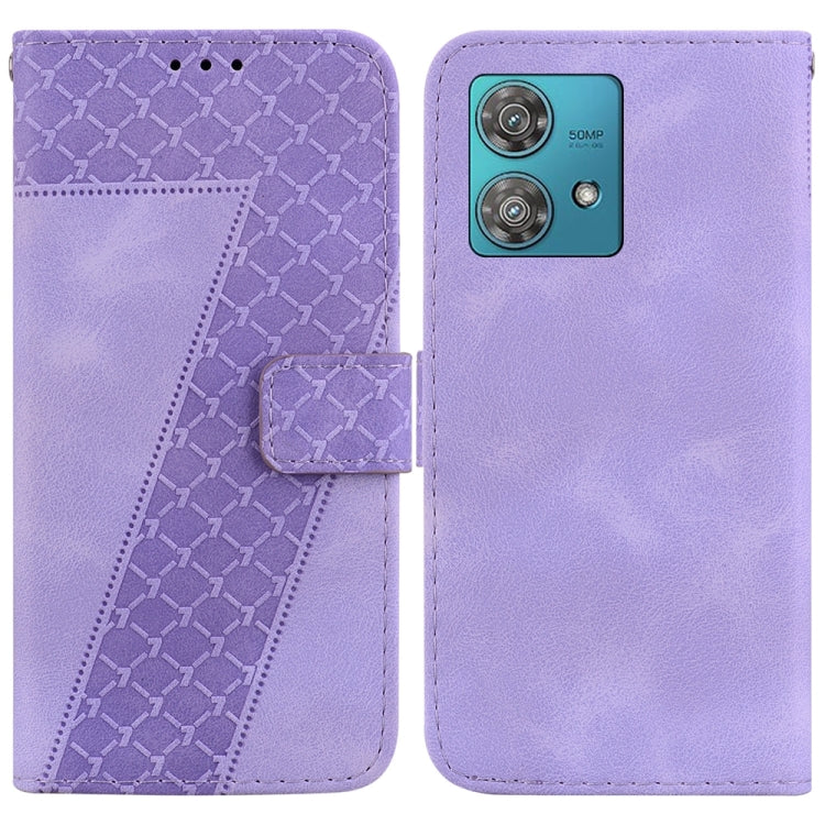 Funda de Cuero para Motorola Edge 40 Neo con Relieve en Forma de 7 (Púrpura)