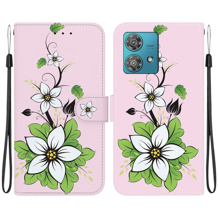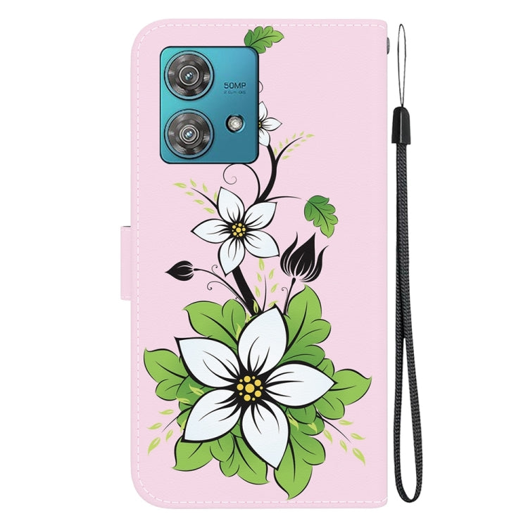 Funda de Cuero para Motorola Edge 40 Neo con Dibujo Coloreado y Textura de Cristal (Lirio)