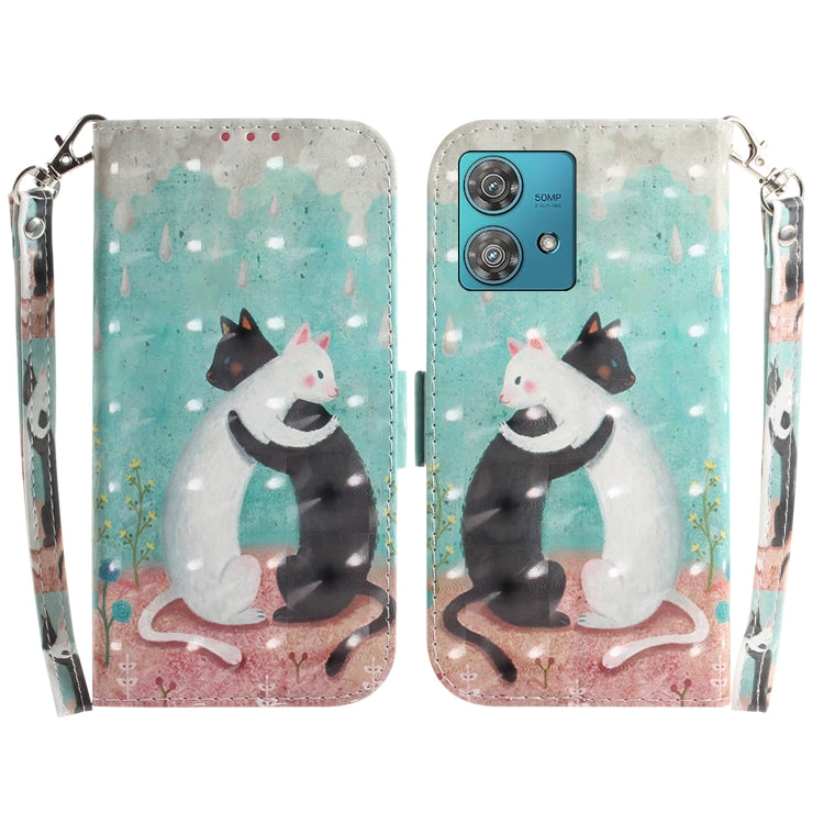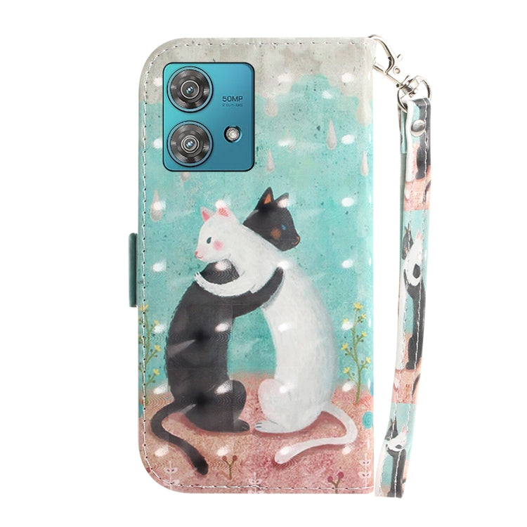 Funda de Cuero para Motorola Edge 40 Neo con Tapa Horizontal y Diseño 3D (Gato Blanco y Negro)