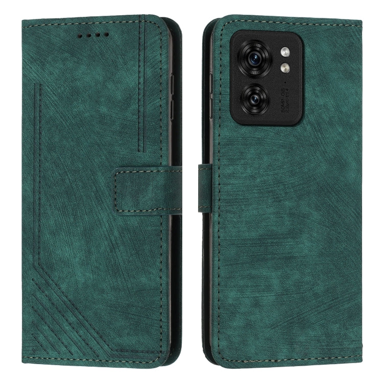 Funda de Cuero para Motorola Edge 40 con Patrón de Rayas y Cordón (Verde)