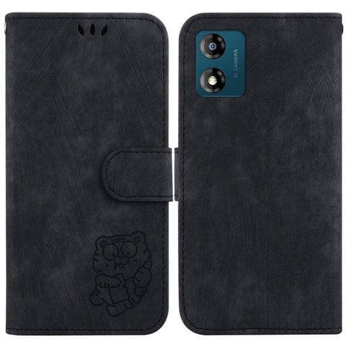 Funda de Cuero para Motorola Moto E13 Little Tiger en Relieve (Negro)