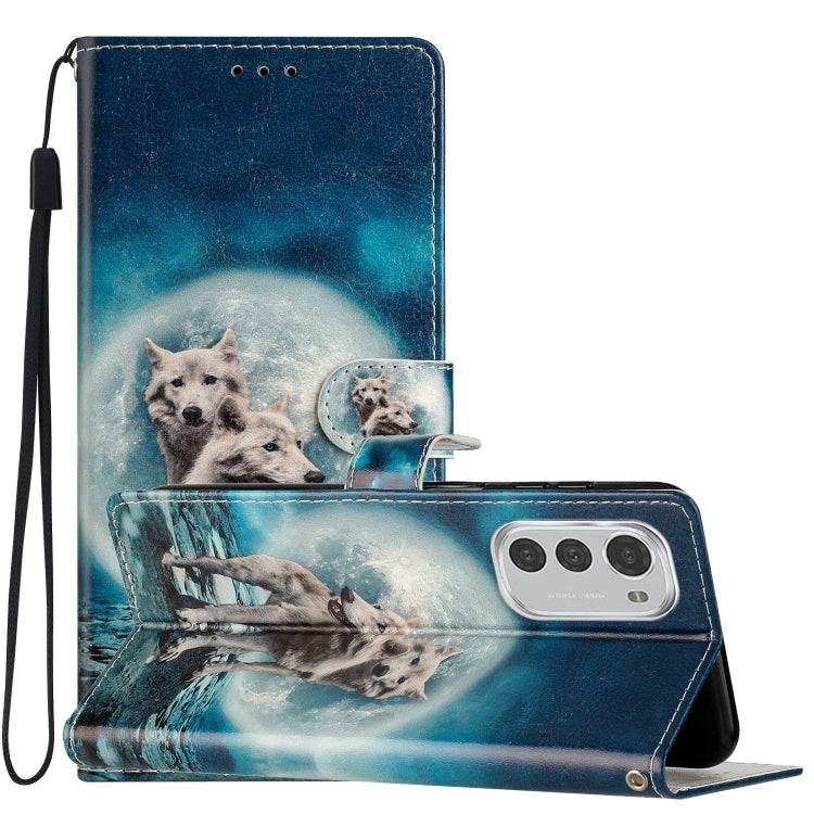Estuche para Motorola Moto E32 de Cuero con Dibujo Coloreado Twin Wolves