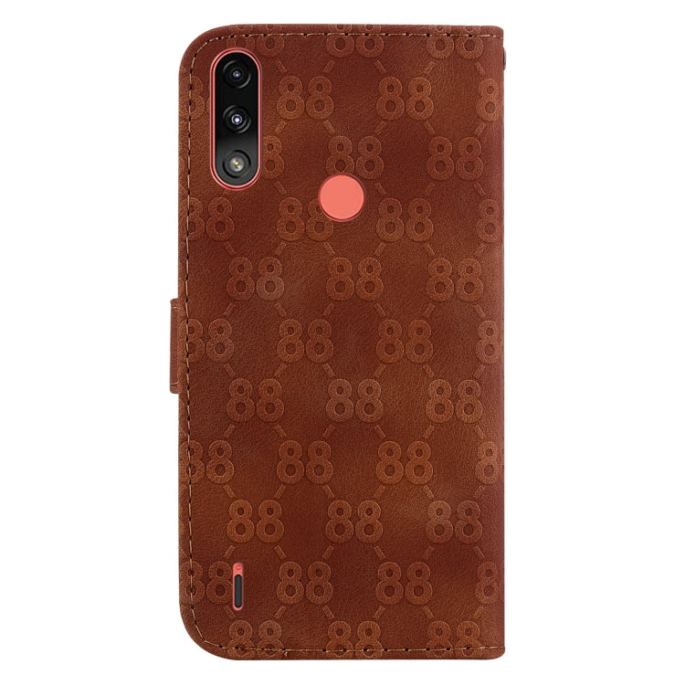 Funda de Cuero para Motorola Moto E7 Power y E7I Power con Relieve Doble Forma 8 (Marrón)