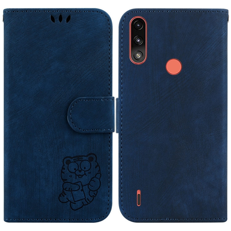 Funda para Motorola Moto E7 Power / E7I Power de Cuero con Relieve Little Tiger (Azul Oscuro)