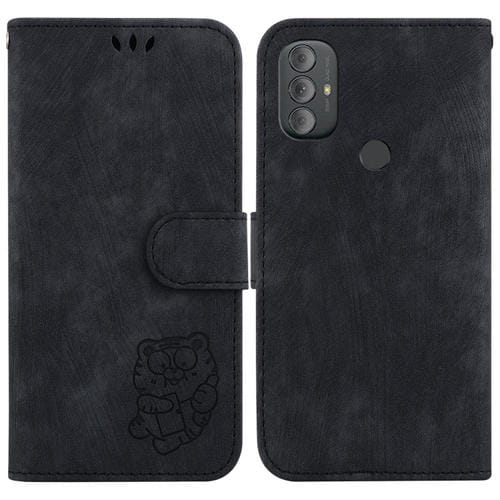 - 1x Funda para Motorola Moto G Power 2022 de Cuero con Relieve Little Tiger (Negro)