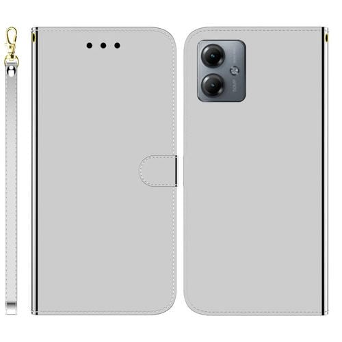 Funda de Cuero para Motorola Moto G14 con Superficie de Espejo Imitada (Plata)