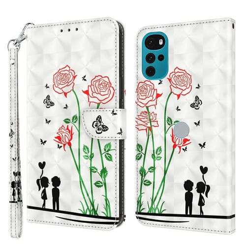 Caja de Teléfono 3D de Cuero Pintado para Motorola Moto G22 (Pareja Rosa)