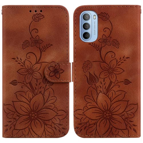 Funda para Motorola Moto G31 / G41 de Cuero con Relieve Lily (Marrón)