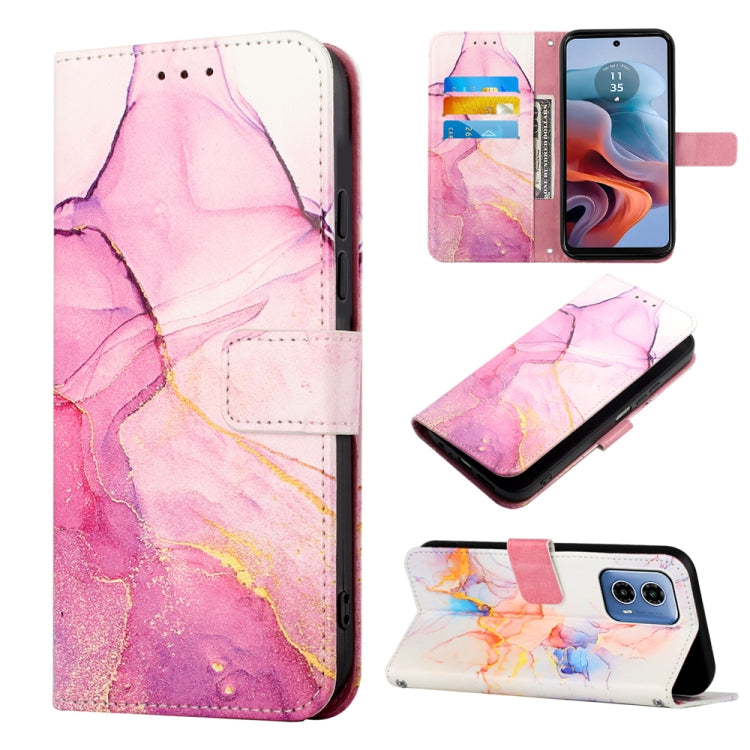 Funda para Motorola Moto G34 Pt003 Cuero con Tapa Patrón Mármol (Rosa, Morado y Dorado)