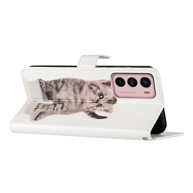 - 1x Estuche de Cuero para Motorola Moto G42 con Dibujo Pequeño Gato Atigrado