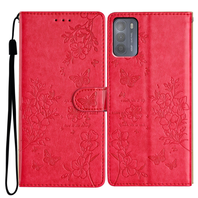 Funda de Cuero para Motorola Moto G50 con Mariposas y Flores (Rojo)