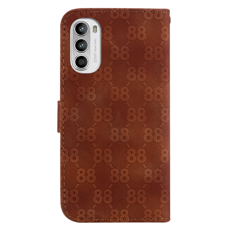 - 1x Estuche para Motorola Moto G52 de cuero en relieve con doble forma de 8 (Marrón)