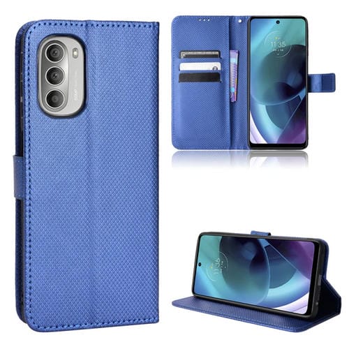 Caja de Cuero para Motorola Moto G52J 5G con Textura de Diamante (Azul)