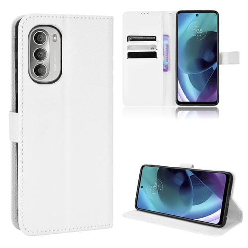 • 1x Caja de Cuero para Motorola Moto G52J 5G con Textura de Diamante (Blanco)