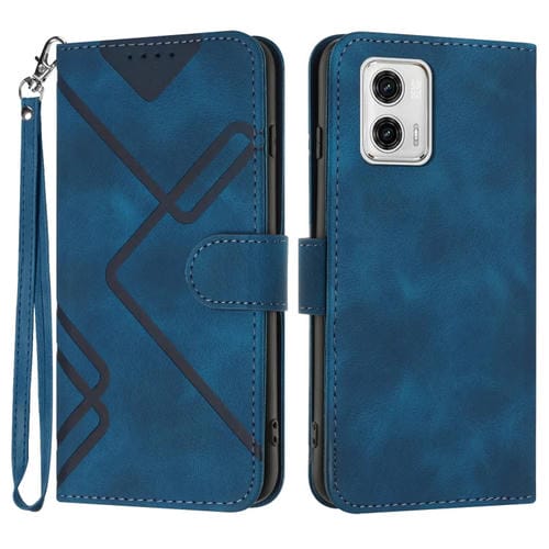 - 1x Funda de Cuero para Motorola Moto G53 con Textura Line Pattern Skin Feel (Azul Real)