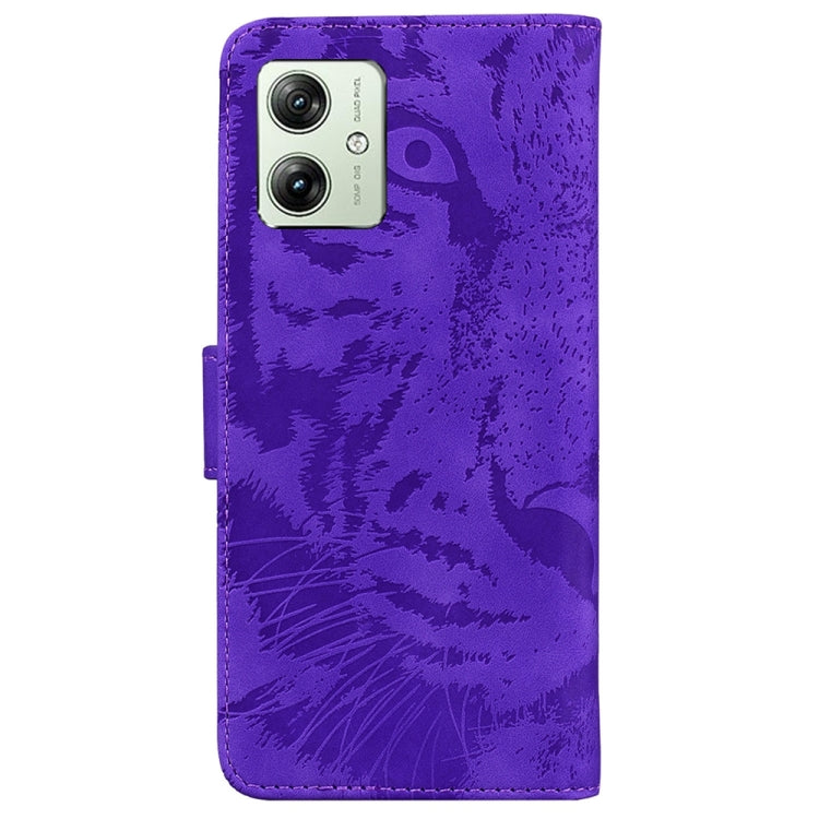 Funda de Cuero para Motorola Moto G54 Tiger Estampado en Relieve (Púrpura)