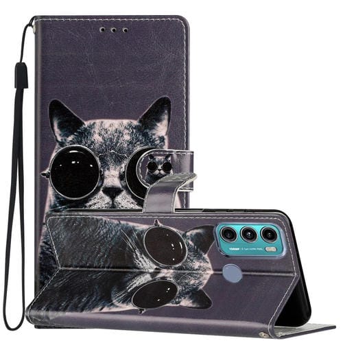- 1x Estuche de Cuero para Motorola Moto G60 con Dibujo Coloreado Gafas de Sol Cat