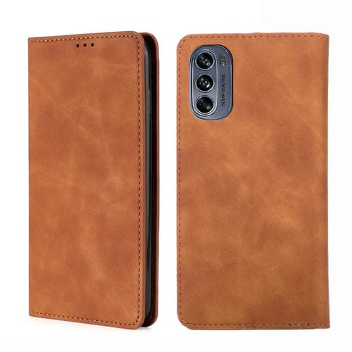 Funda para Motorola Moto G62 5G Skin Feel Magnética Horizontal Flip de Cuero (Marrón Claro)