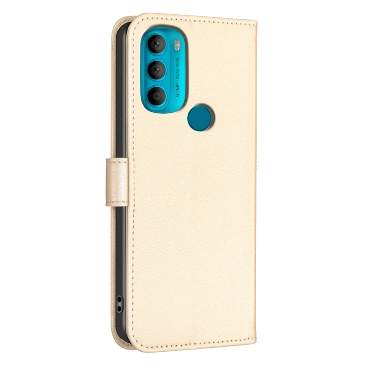 Funda de Cuero para Motorola Moto G71 con Relieve de Cuatro Hojas (Dorado)