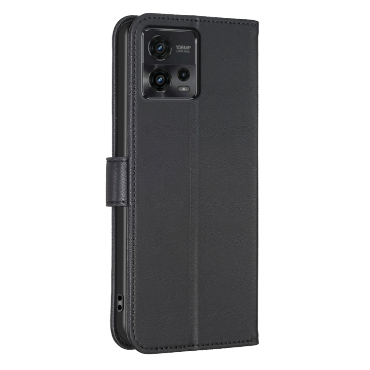 Funda de Cuero para Motorola Moto G72 con Relieve de Cuatro Hojas (Negro)