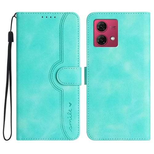 Funda de Cuero para Motorola Moto G84 5G con Sensación de Piel y Patrón de Corazón (Azul Claro)