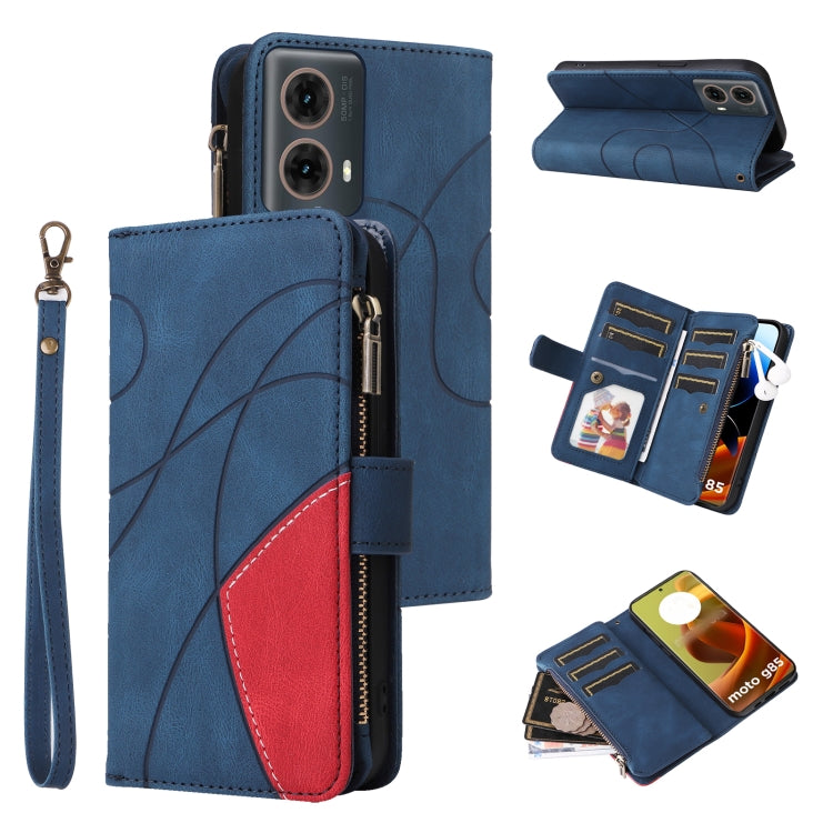 Funda para Motorola Moto G85 de Cuero con Billetera, Cremallera y 9 Ranuras para Tarjetas (Azul)