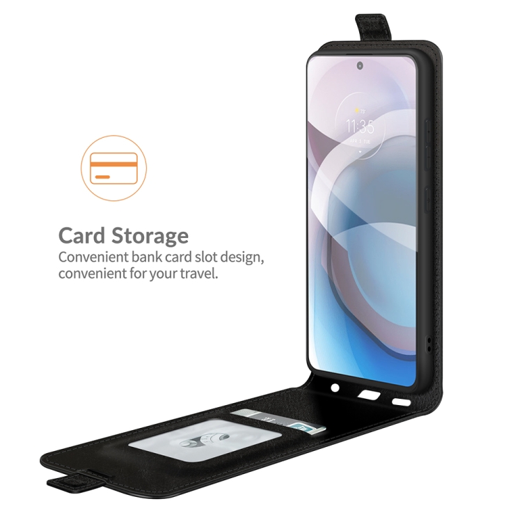 Para MOTOROLA MOTO ONE 5G ACE R64 Textura de una sola funda protectora de cuero vertical, con ranuras para tarjeta y marco de fotos (negro)