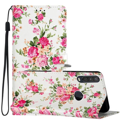 - 1x Funda de Cuero para Motorola Moto One Action con dibujo coloreado Peonías