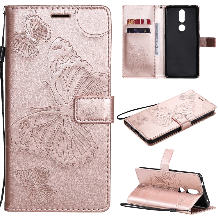 Para Nokia 2.4 3D Mariposas en relieve Patrón Funda de cuero con tapa horizontal con soporte, ranura para tarjeta y billetera (oro rosa)
