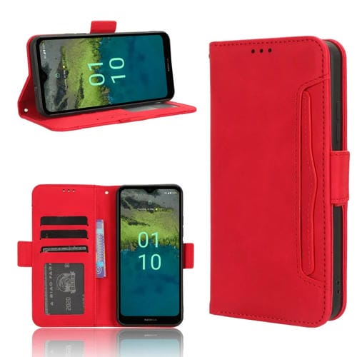 Funda de Cuero para Nokia C110 4G con Textura Skin Feel y Ranuras para Tarjetas (Rojo)