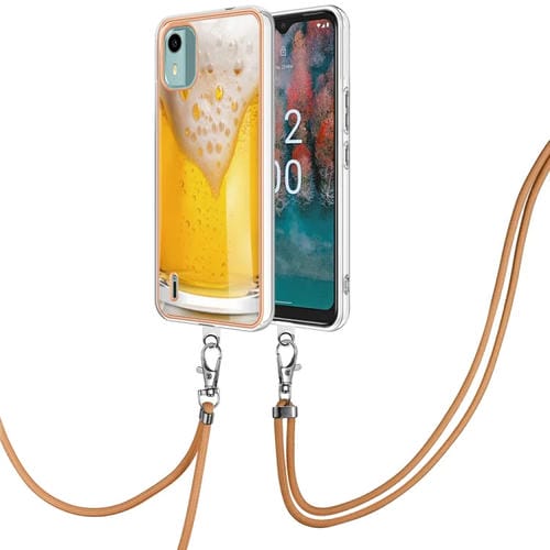 Estuche para Nokia C12 IMD Doble Cara con Galvanoplastia y Cordón (Cerveza de Barril)