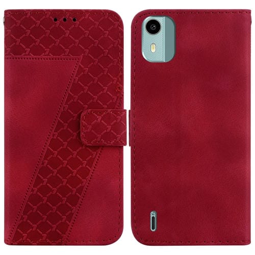 Funda de Cuero En Relieve en Forma de 7 para Nokia C12 (Rojo)