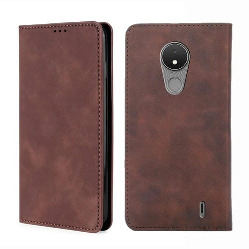 Funda Flip Leather para Nokia C21 Skin Feel Magnetic Horizontic (Marrón Oscuro)