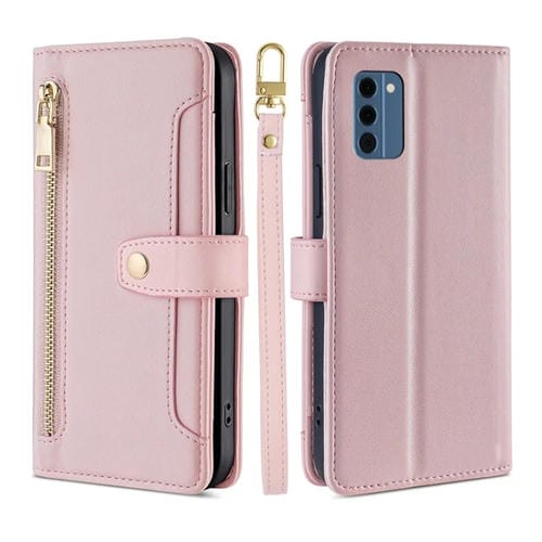 Funda de Cuero para Nokia C300 4G Us Edition Lite con Textura de Oveja y Cremallera (Rosa)