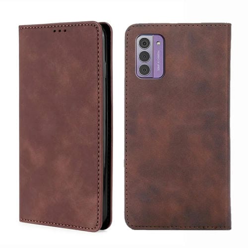 Funda de Cuero Magnética para Nokia G42 5G Skin Feel (Marrón Oscuro)
