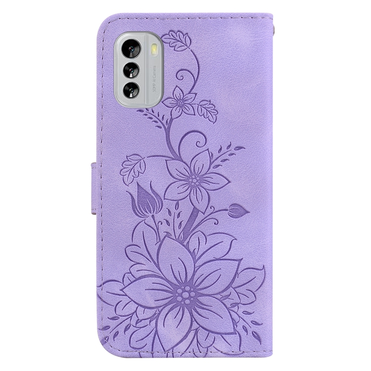 Funda de Cuero en Relieve para Nokia G60 Lily (Púrpura)