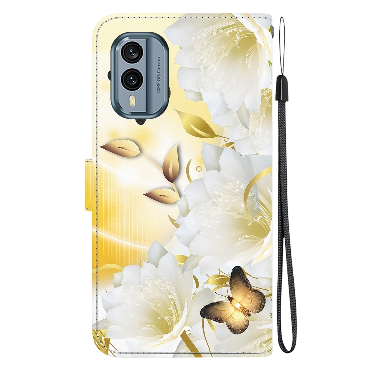 Estuche de Cuero para Nokia X30 con Dibujo Coloreado y Textura de Cristal (Epiphyllum de Mariposa Dorada)
