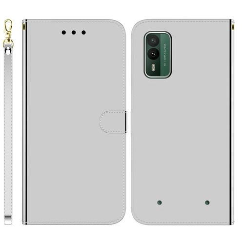Estuche para Teléfono Nokia Xr21 de Cuero con Superficie de Espejo Imitado (Plata)