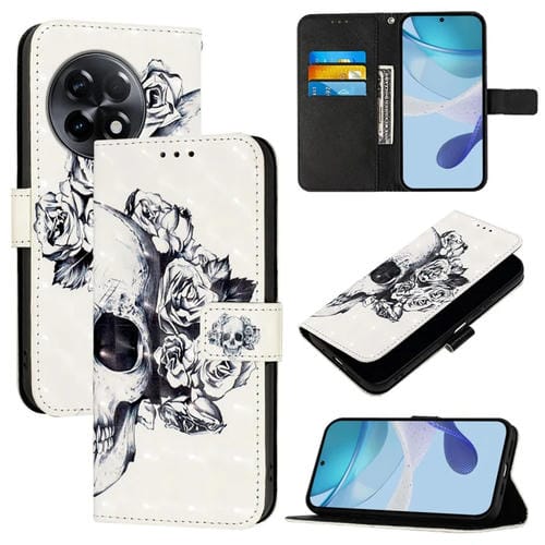 Funda para OnePlus 11R 5G de Cuero con Tapa Horizontal y Pintura 3D (Calavera)