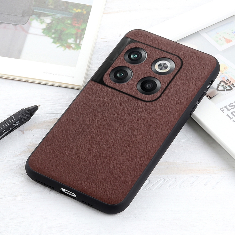 - 1x Funda de Cuero Genuino para OnePlus Ace Pro / 10T con Textura de Piel de Cordero (Marrón)