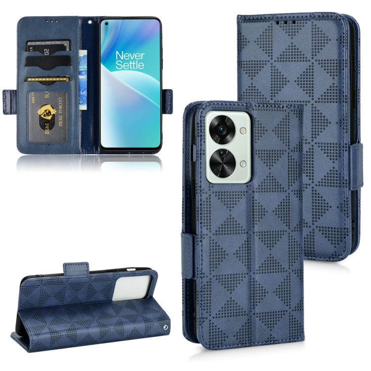 Funda de Cuero para OnePlus Nord 2T 5G con Triángulo Simétrico (Azul)