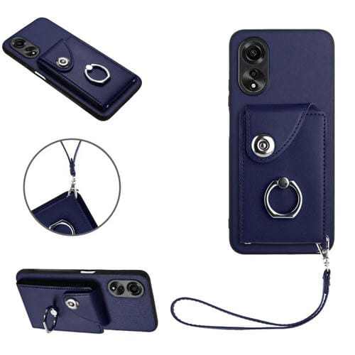 Para Oppo A17 Global Organ Card Bag Ring Holder Pu Funda para Teléfono con Cordón (Azul)