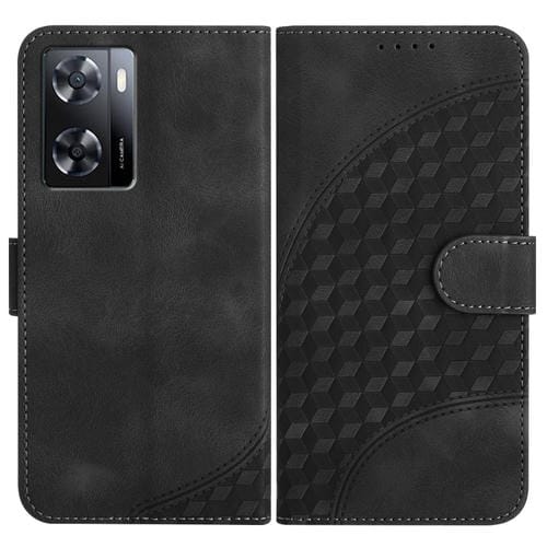 Para Oppo A57 4G Yx0060 Funda de Cuero para Teléfono con Relieve y Cabeza de Elefante con Cordón (Negro)