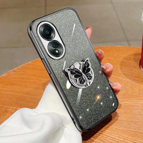 Para Oppo A58 4G Funda para Teléfono de TPU con Soporte de Mariposa con Brillo Degradado Plateado (Negro)