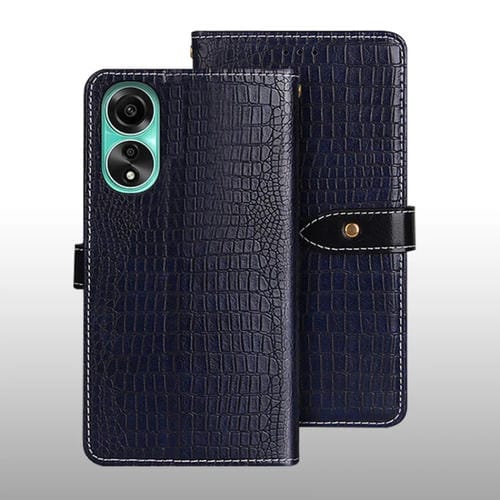 Para Oppo A78 4G Funda para Teléfono de Cuero con Textura de Cocodrilo Idewei Extranjero (Azul Oscuro)