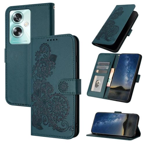 Para Oppo A79 Datura Flower Funda de Cuero con Tapa En Relieve (Verde Oscuro)